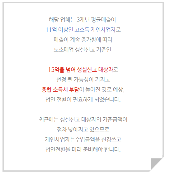 즉, 개인사업자의 매출이 일정 이상 늘어나면