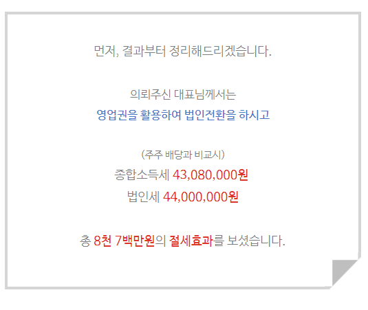 법인전환 및 종합소득세절세효과를 본
