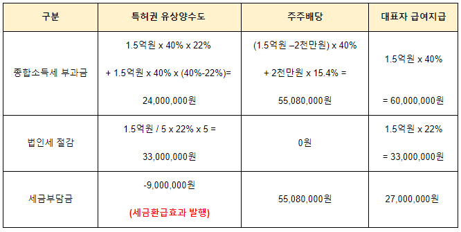 해당법인에 특허소유권을 넘기고