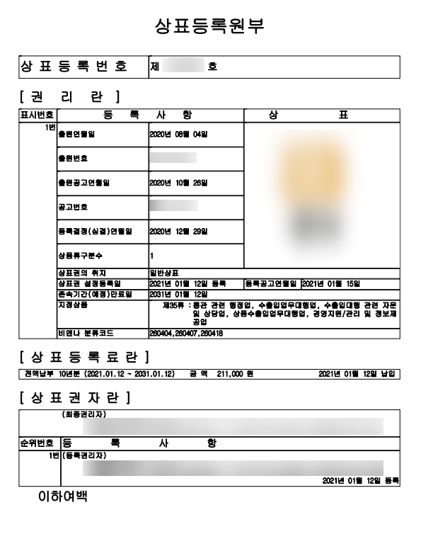 대표님께서 실제 보유하고 계신 상표권 이미지
